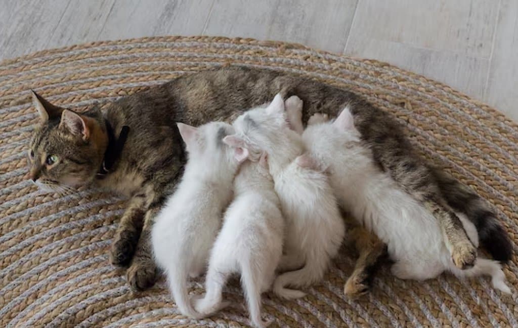 After giving birth, your cat needs time to rest, feed, and bond with her babies. Most of her maternal instincts will kick in naturally.